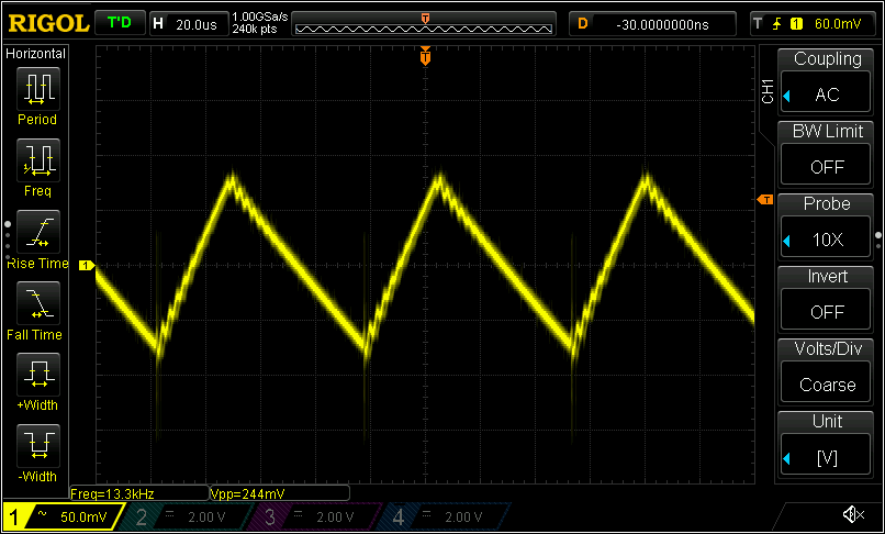 Ripple on 5V output from a H744 regulator supplied with 20VDC from a bench PSU